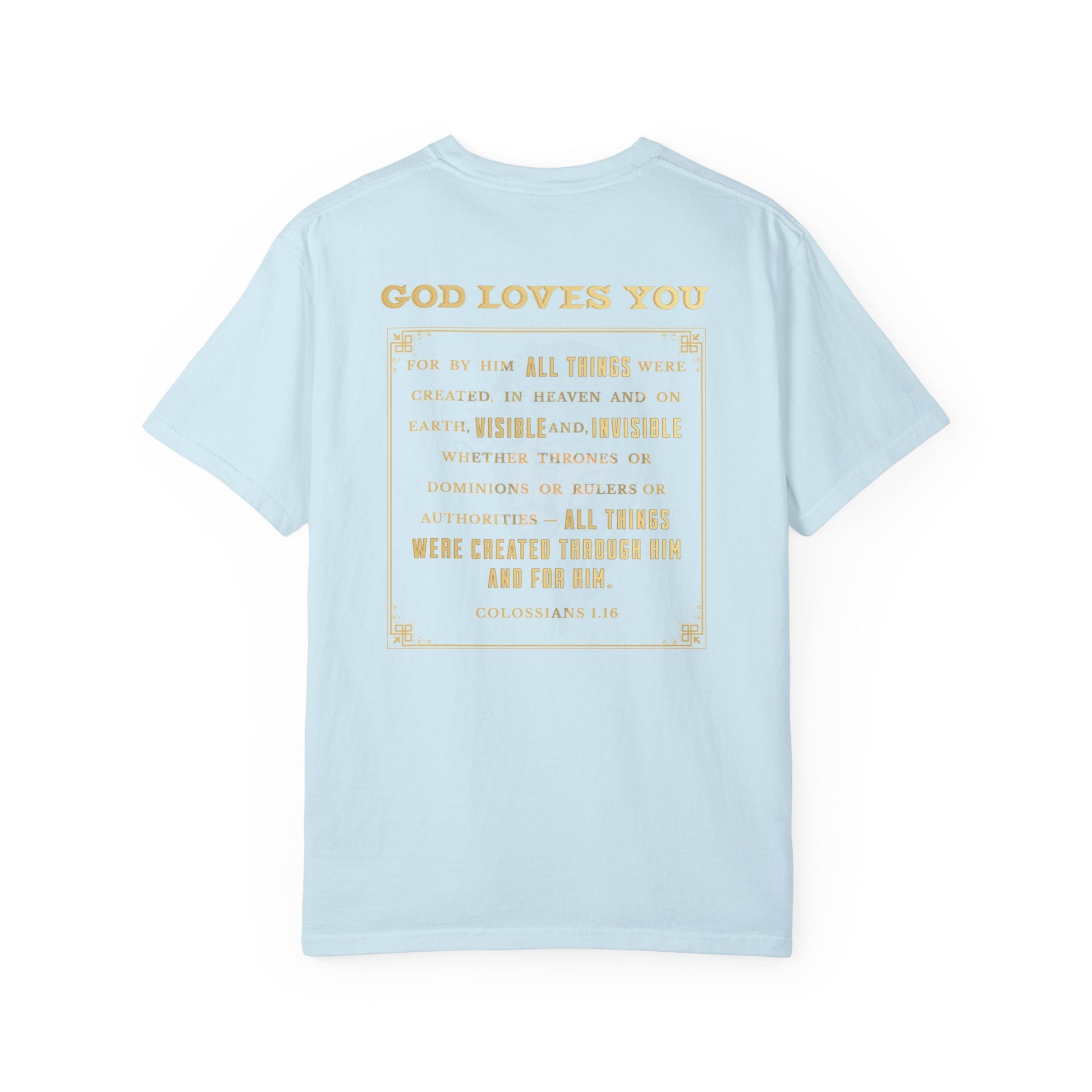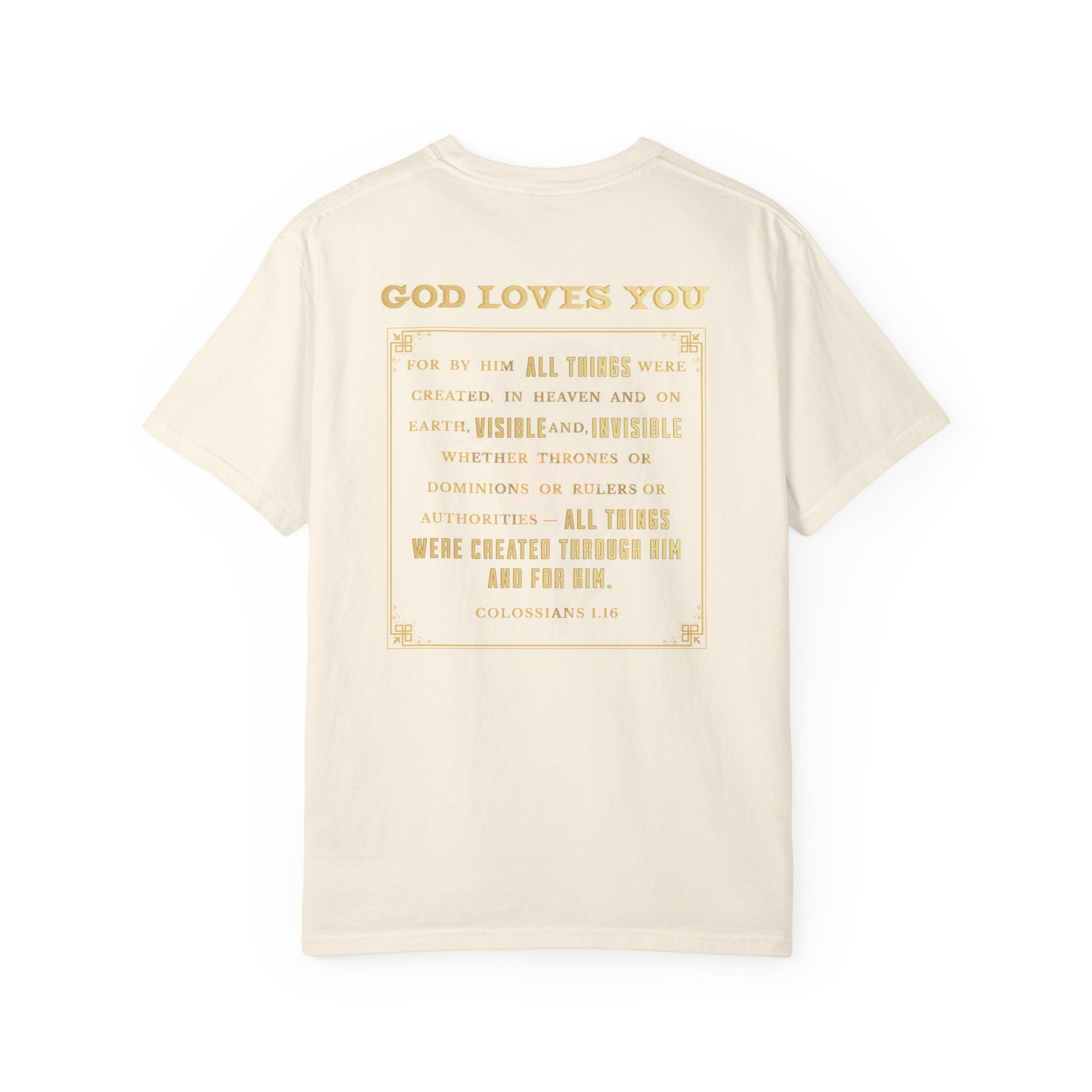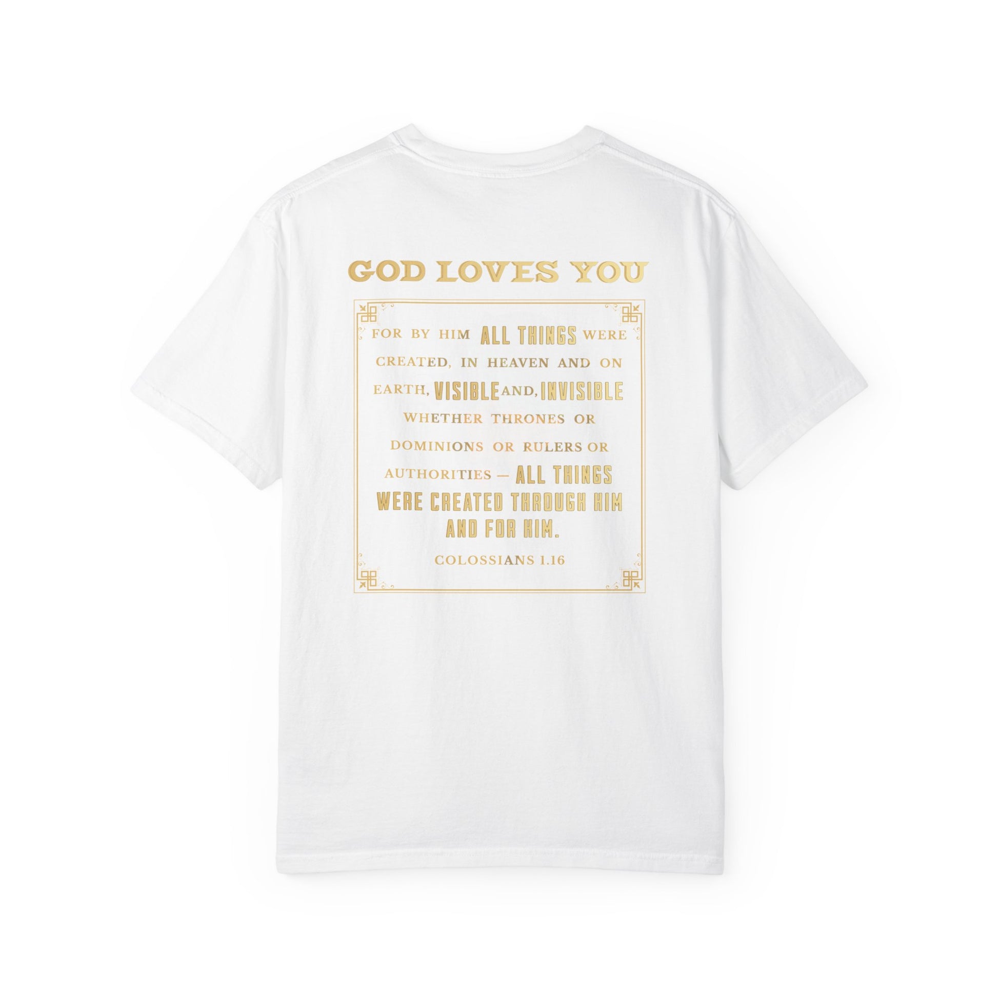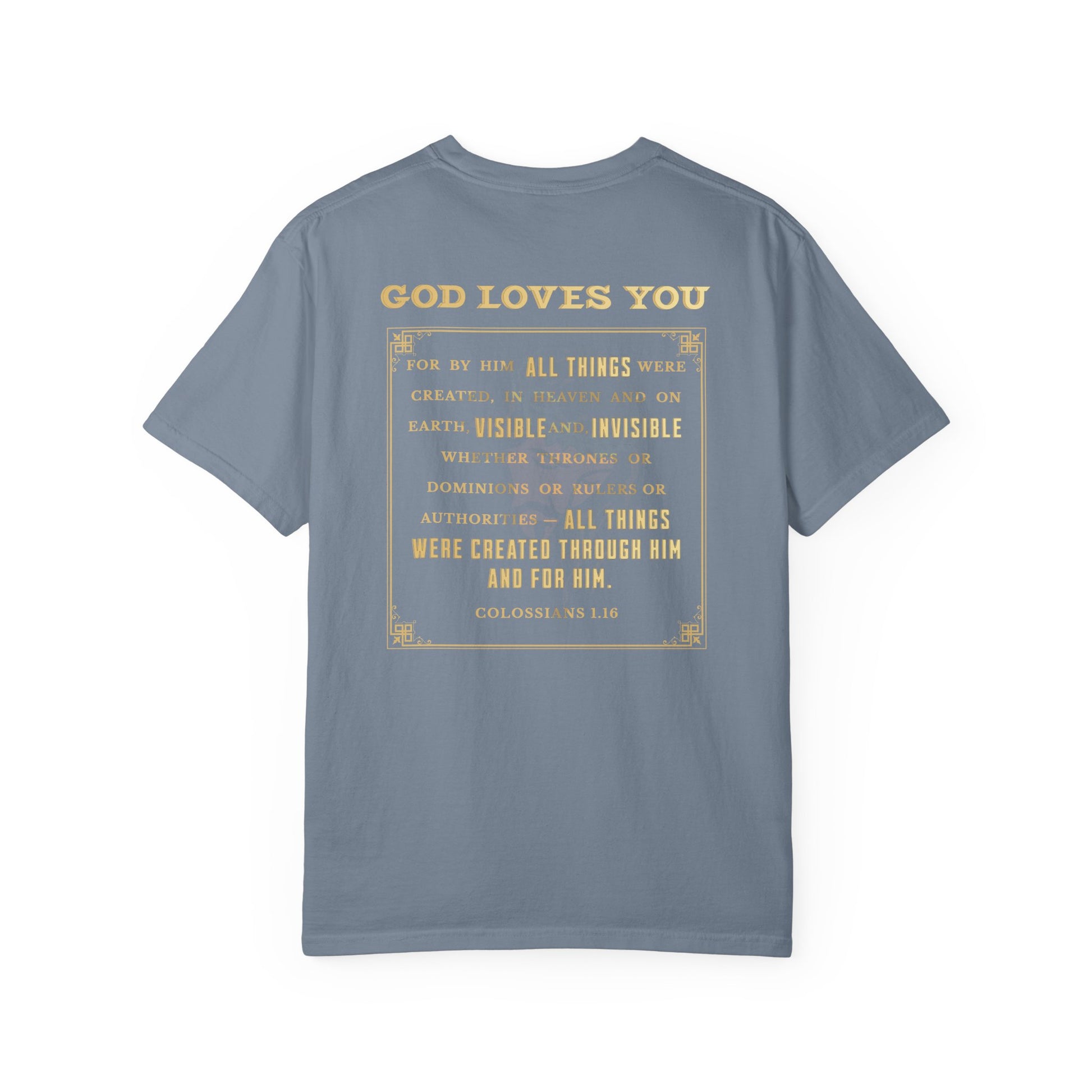 Above the verse sits the powerful truth: GOD LOVES YOU—a message the world desperately needs to see and hear.