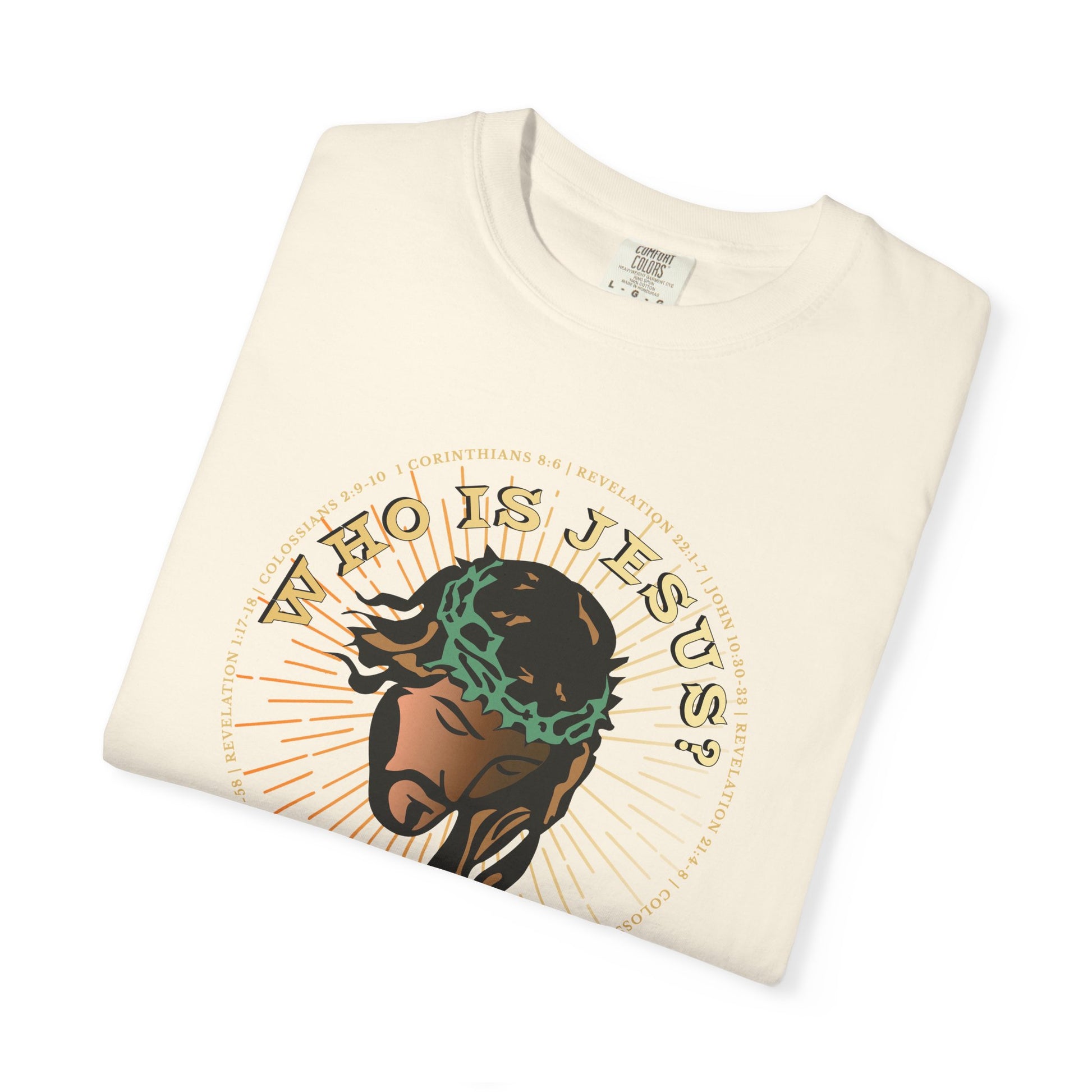 On the front, you'll find the bold question: WHO IS JESUS, surrounded by scripture references that affirm His identity as the One True God. It’s the perfect conversation starter and an open door to share your faith with anyone curious enough to ask.