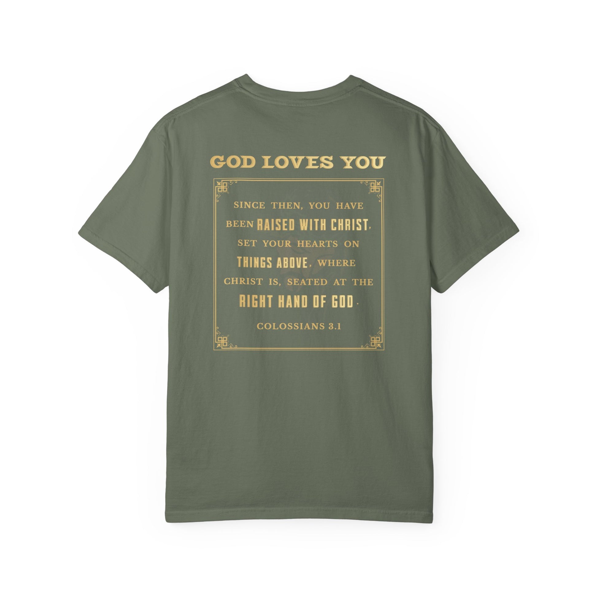 Above the verse sits the powerful truth: GOD LOVES YOU—a message the world desperately needs to see and hear.