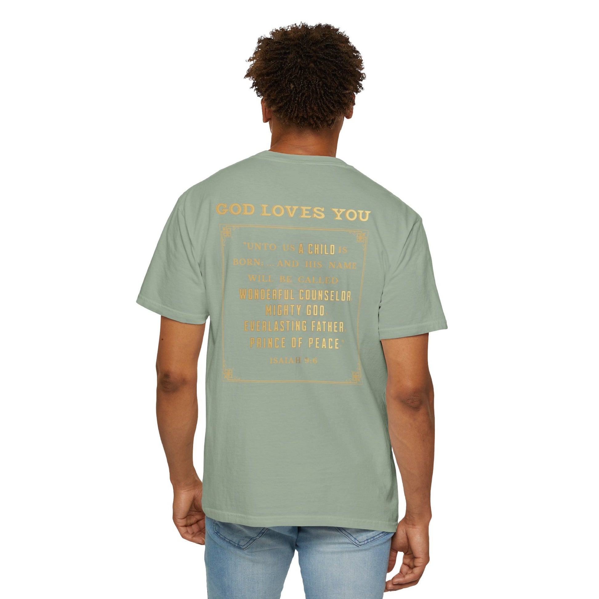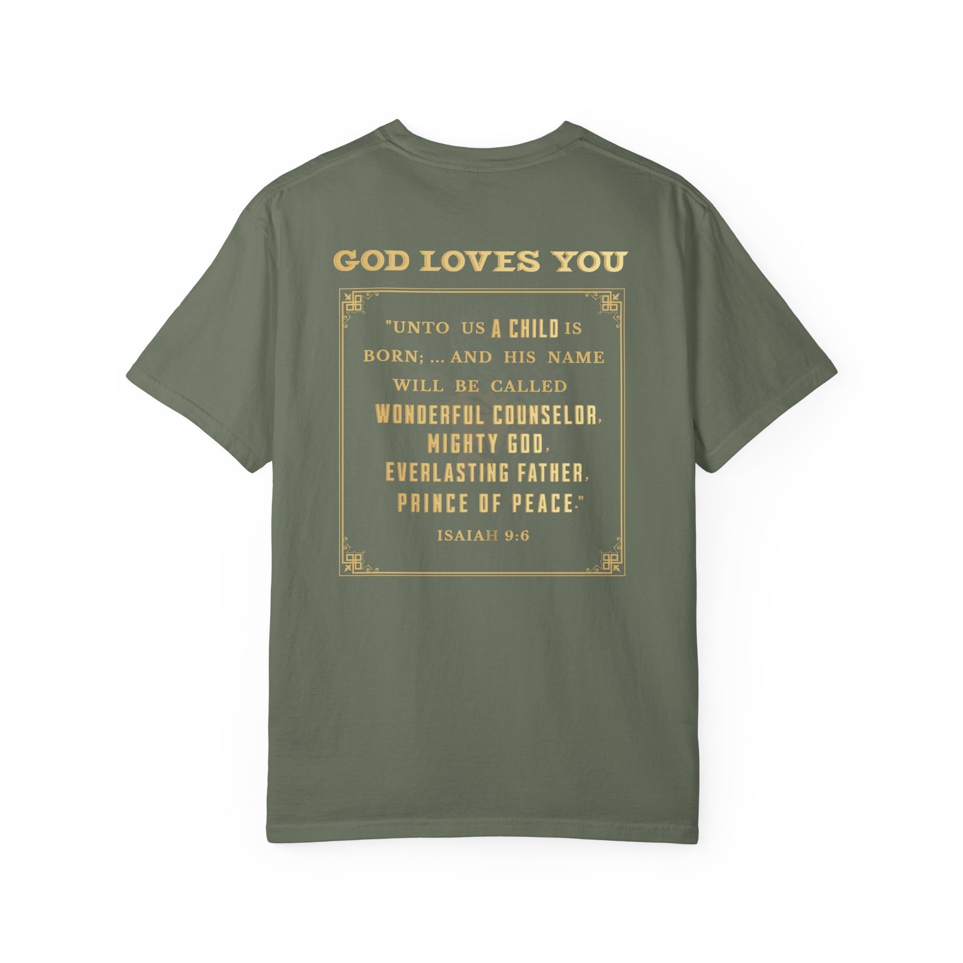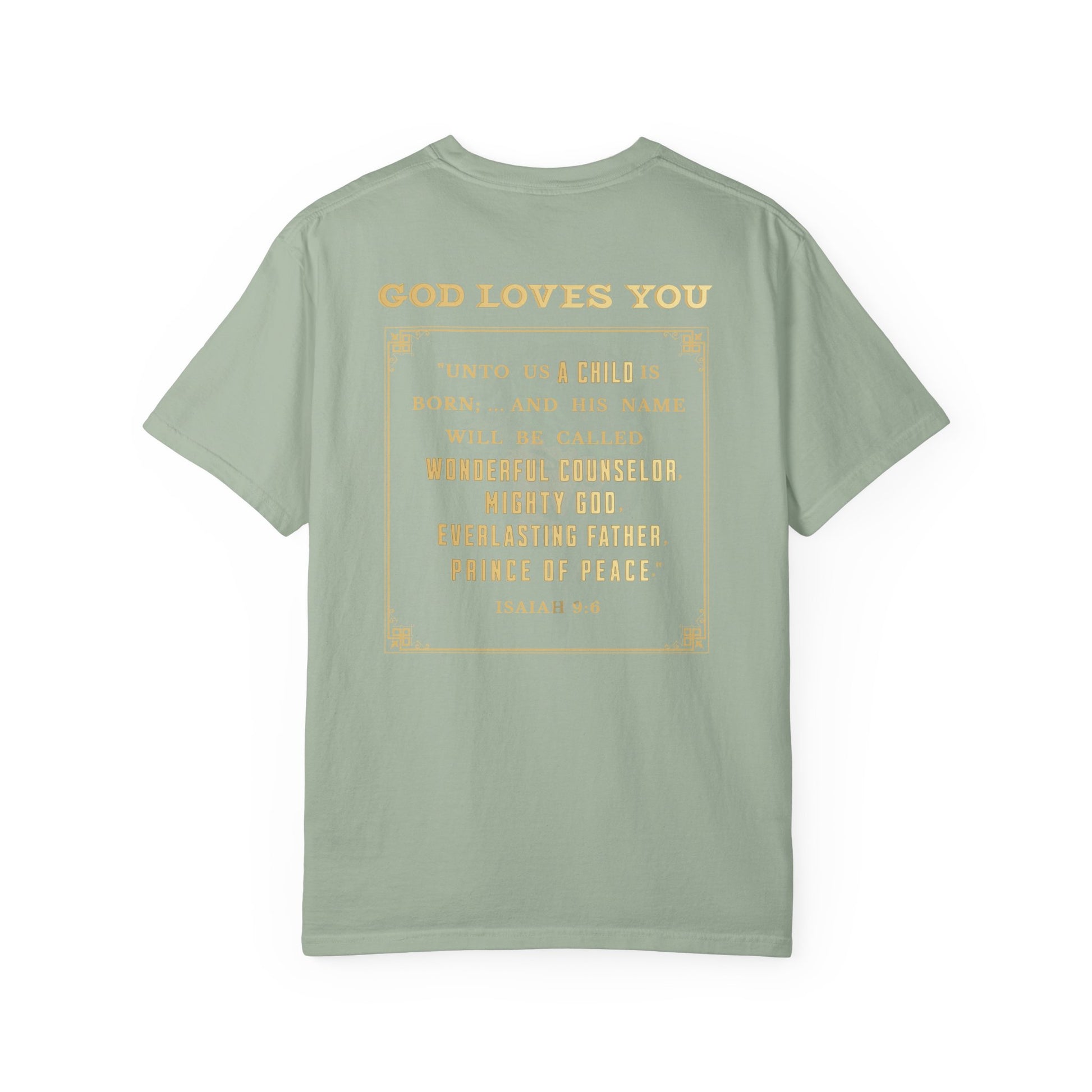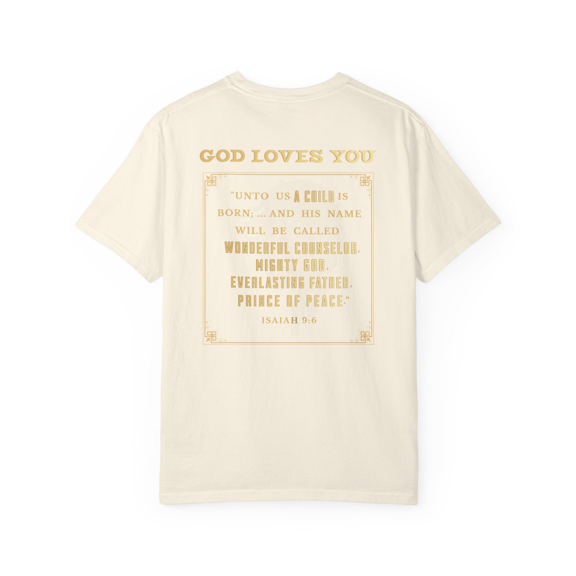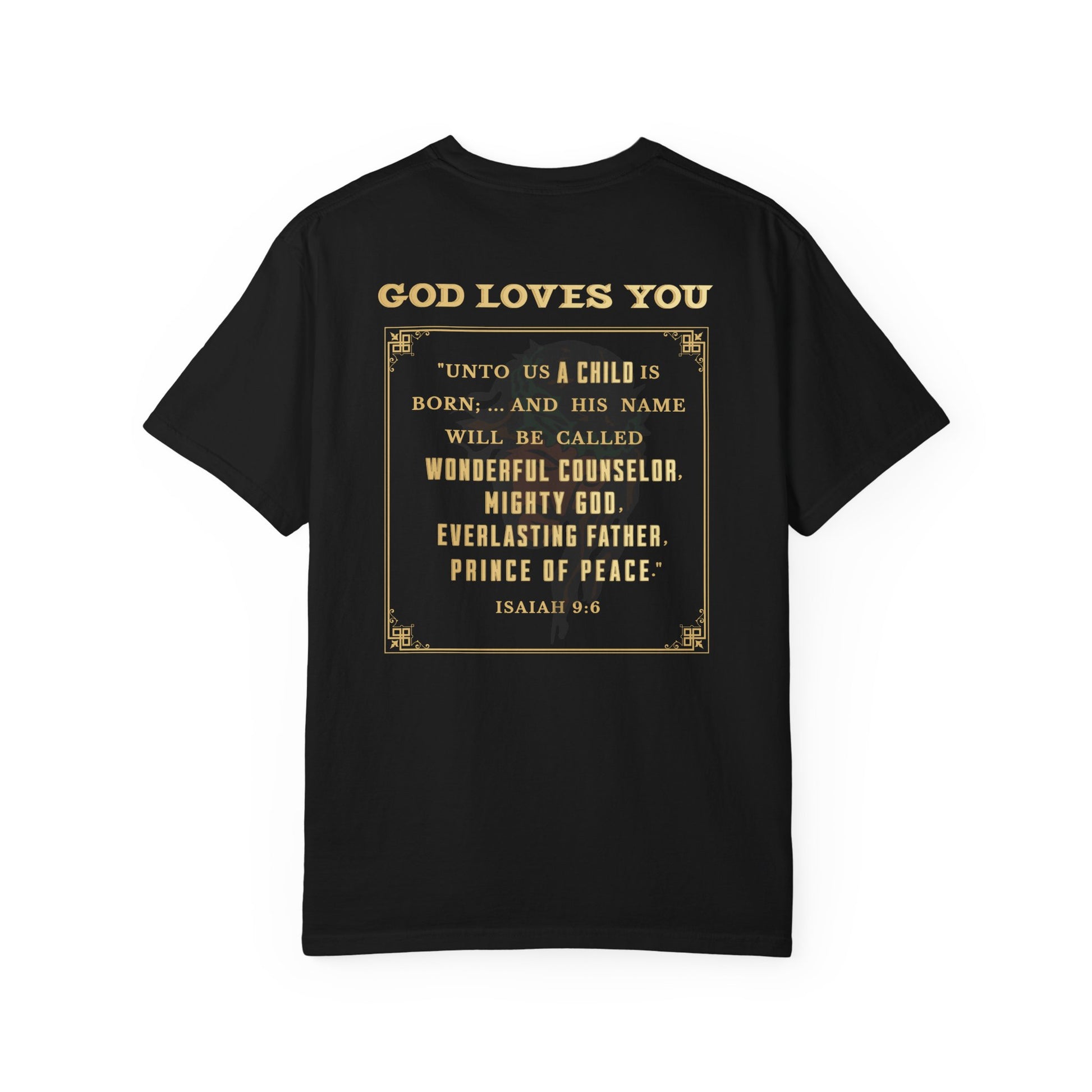 The back boldly features the verse from Isaiah 9:6, where the prophet Isaiah proclaims: