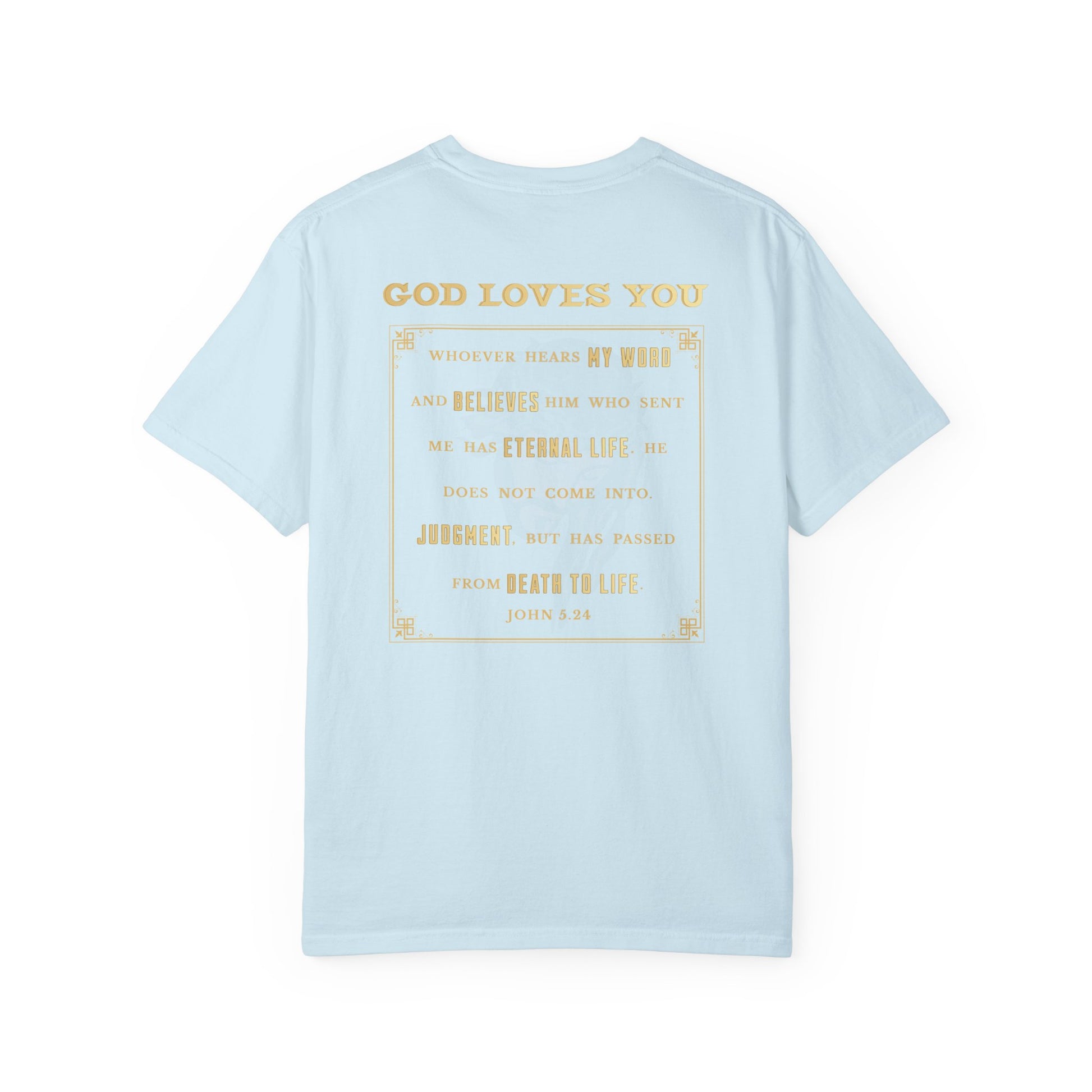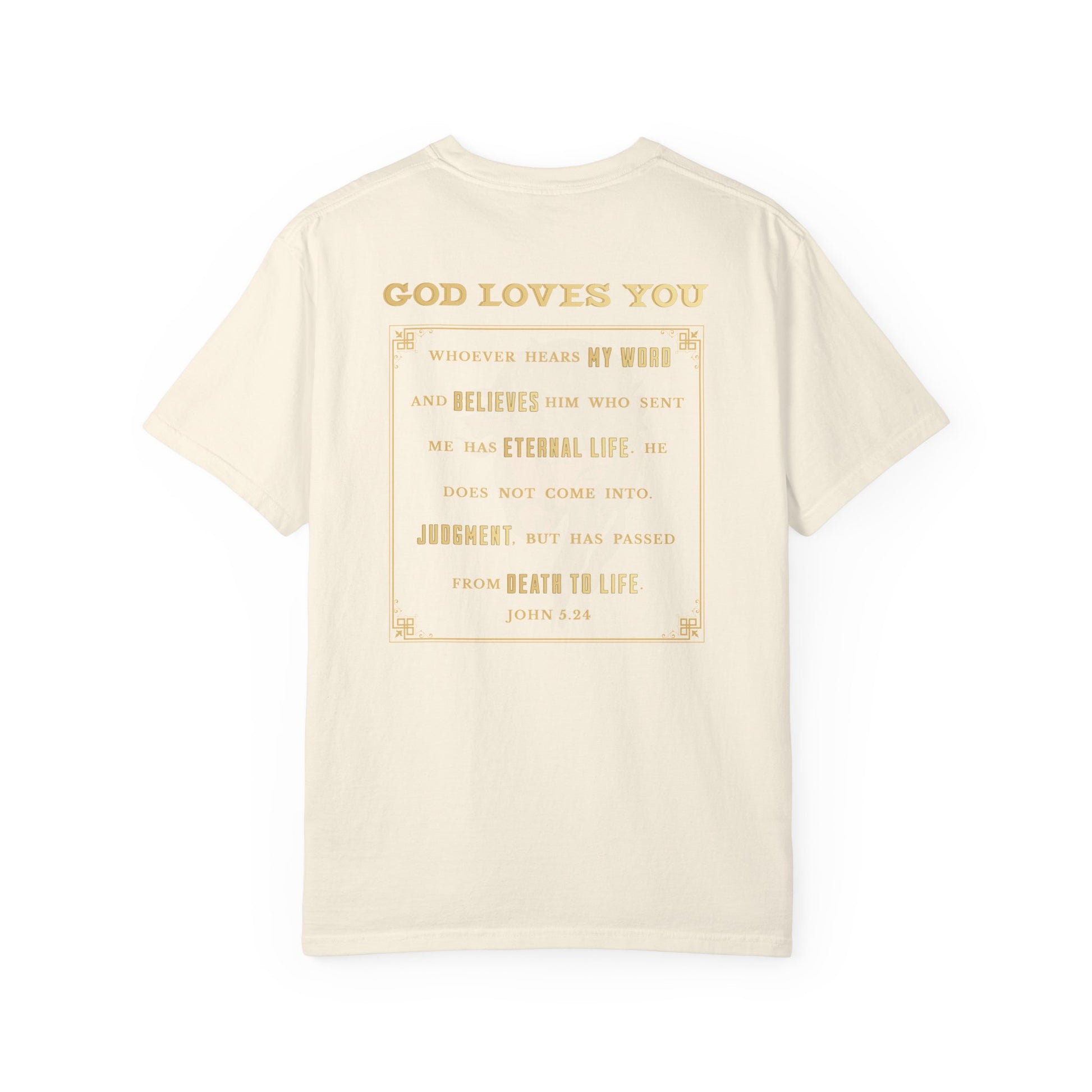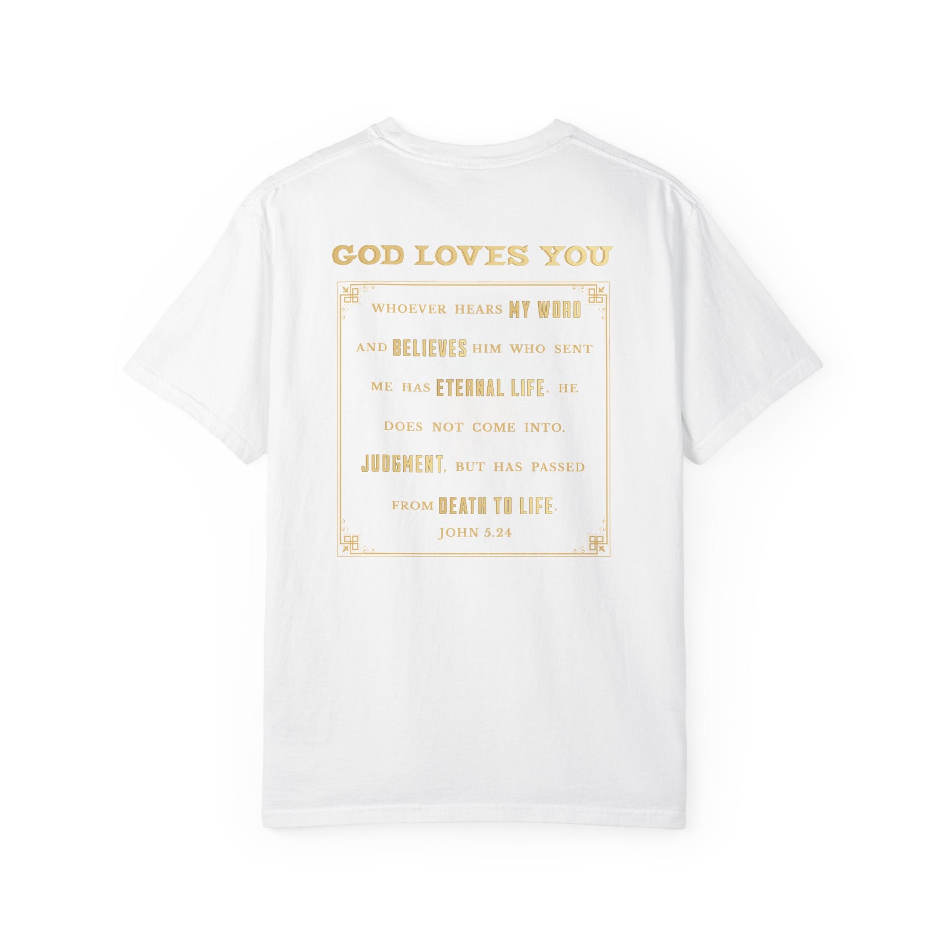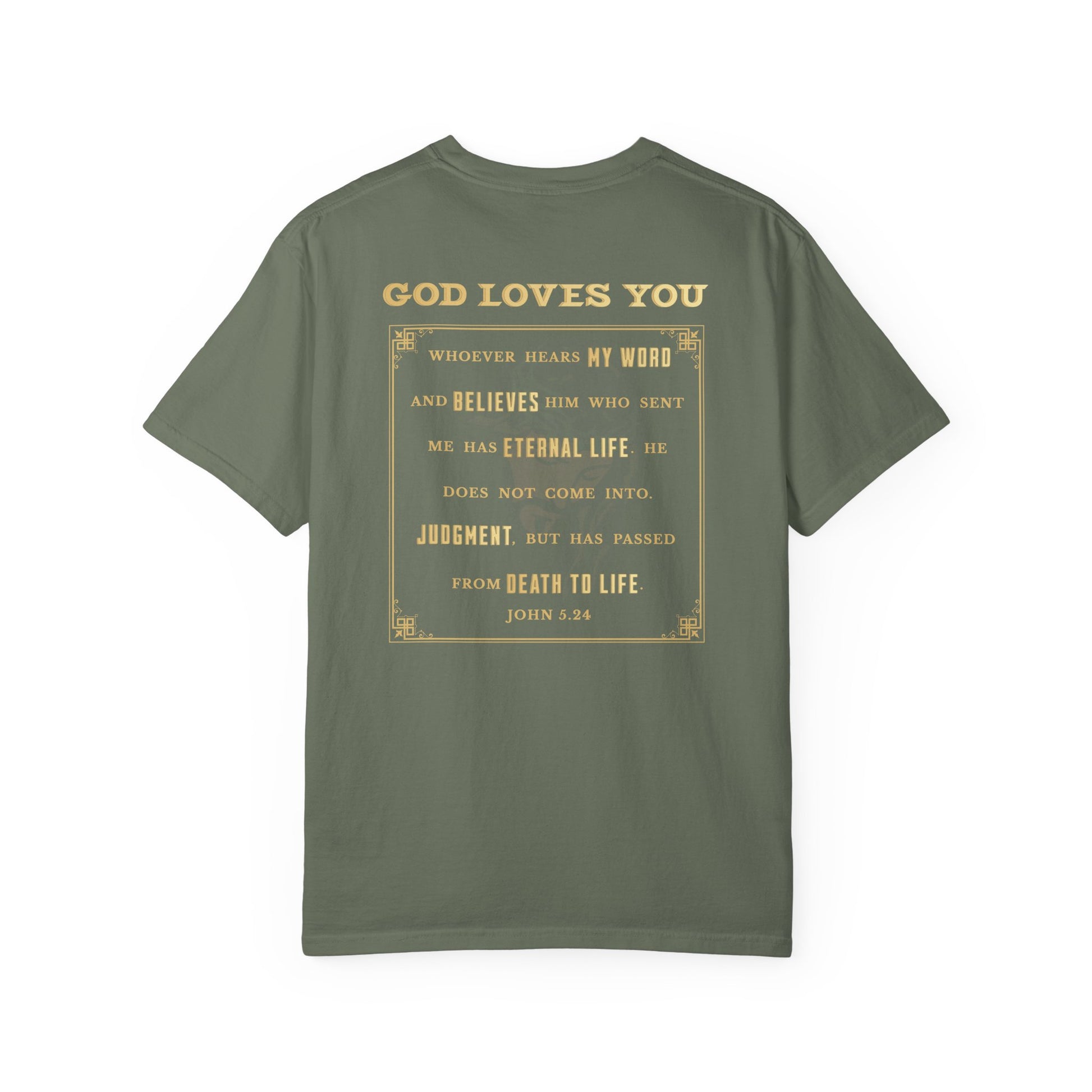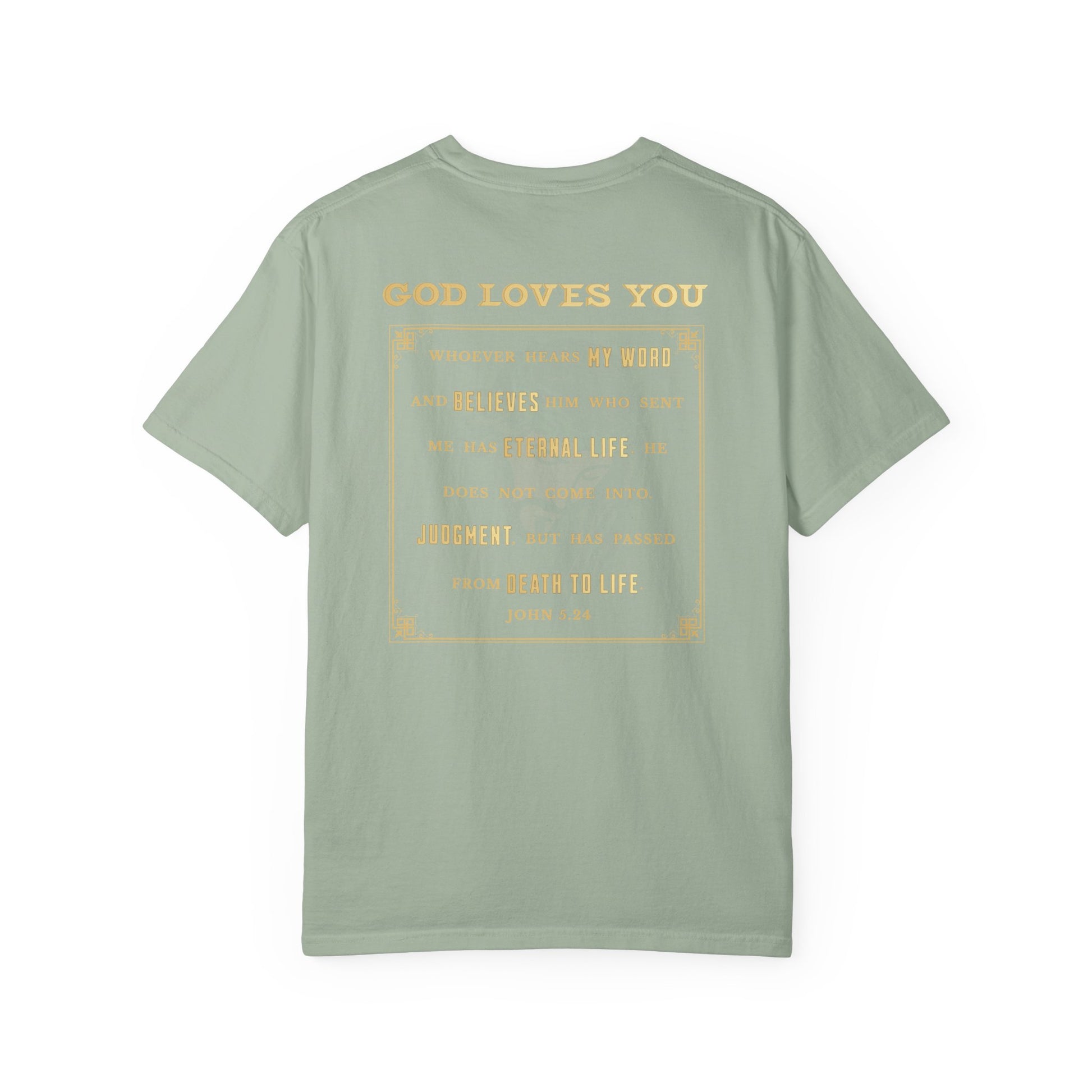 Above the verse sits the powerful truth: GOD LOVES YOU—a message the world desperately needs to see and hear.